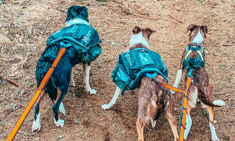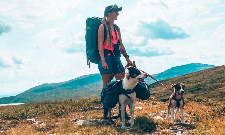 Vi pakker mye forskjellig i kløven. Er det for treningstur i nærområdet, bruker vi vannflasker eller sandposer for vektens skyld. På dagstur eller langtur i fjellet bærer de niste, drikke og eventuelt klær, samt et lite nødkit til seg selv med bandasje, potesokker, salve og blodstopp-pulver, forteller Anna.