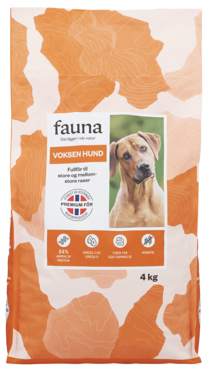 Norskprodusert fullfôr for aktive hunder, utviklet av veterinær med 55% animalske og marine ingredienser. Formulert for høyt energibehov, med omega-3 og balansert fiber for optimal tarmhelse.
